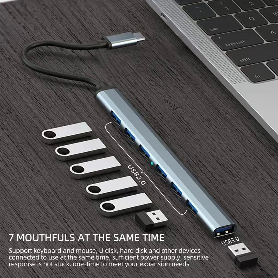7 Ports USB 3.0 Type C HUB Expander Splitter High Speed OTG Adapter Docking Station For LaptopPC Hard Drive Mouse Keyboard
